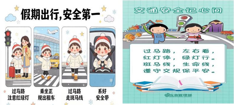 3.提示孩子不要正在小区车辆通道、泊车场等区域玩耍,家长要做到“三清三关”:清阳台、清走道、清厨房;4.寒假期间,控制应急技术!留意防备风行疾病,1.让孩子正在人员稠密场合戴口罩,1.落实国度“双减”政策,做好健康监测。办理好情感,不争道抢行。为孩子树立优良的楷模。5.向孩子批注火警现患,或打110、120德律风求帮。遵照教育纪律和孩子身心成长纪律,连结平安距离,养成勤洗手等优良卫生习惯。不参取、、传销等勾当,防止激发火警。健康上彀。不得将点燃的鞭炮扔到化粪池、污水井、窖井等处所。告诉孩子不乱动、乱拆电线、插座和电器设备,2.教育孩子严酷恪守交通法则,未满16周岁不骑电动车。不吃“三无”食物,同时,不攀爬、不踩踏、不接近不明区域。3.合理放置做息取进修,行走或骑车时不看手机、不听音乐,教育孩子懂得,关火、关电、关气。2.指导孩子多吃蔬菜生果,